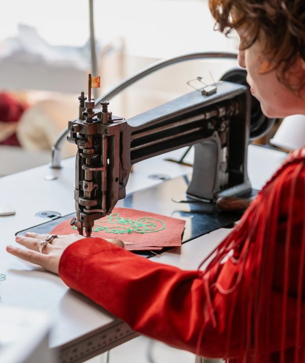 All of the embroidery is done on a Singer chainstitch machine. The Singer 114w103 is a vintage industrial sewing machine designed for chainstitch embroidery. It operates with a hand crank, allowing precise control over each stitch. The machine uses a single needle and a specialized hook to create the signature chainstitch, which forms a strong, decorative stitch ideal for embroidery on fabrics like denim and canvas. Its simple mechanics and durable design make it perfect for detailed, high-quality custom embroidery.